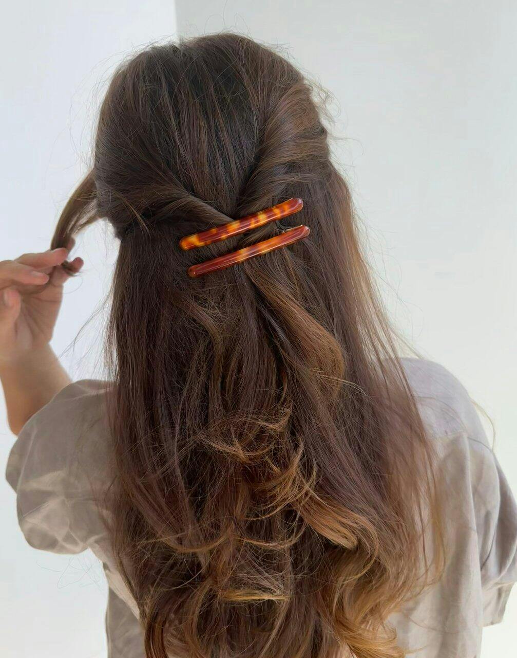 Elegant set of two 3" premium acetate hair pins in a range of sophisticated colours, designed for versatile styling and secure hold across all hair types.