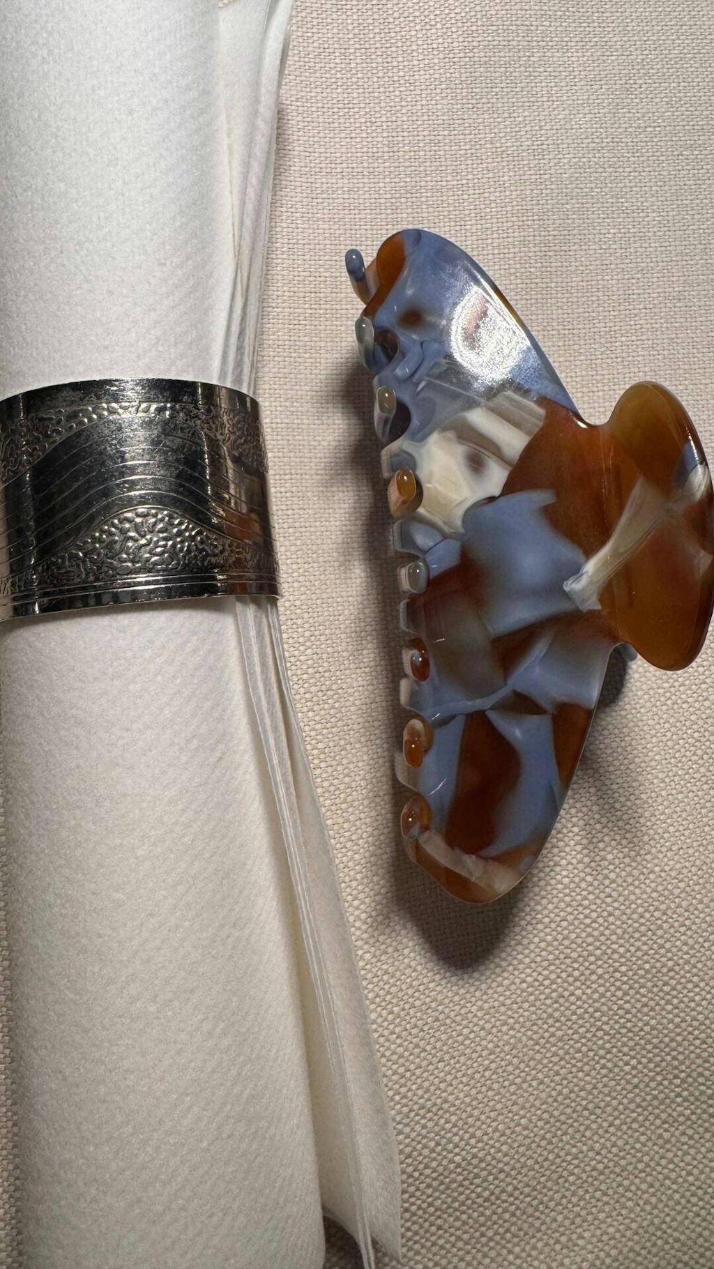 Inspired by soft marble textures and sculpted by hand, the Lunel Clip is designed for long, thick hair that deserves to hold without compromise. Handrafted from premium acetate and available in dreamy Blue or Cream tones, it combines everyday function with elevated form. Whether swept up or half-tied, it secures effortlessly with strength and grace.